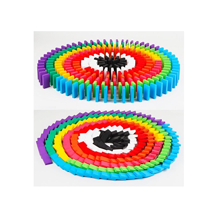 MOON BOAT 12색 200개 도미노 쓰러뜨려 집짓기 놀이 지육 장난감 천연 목제 장난감 컬러풀 (어린)아이 생일 선물 수납대부