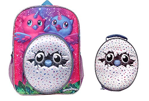 -. Feature : 2017 Hatchimals Deluxe Backpack + Insulated Lunch Bag! / Adjustable, padded shoulder straps provide maximum comfort and fit. Large main pocket, smaller front pocket and two side mesh pockets ensure your hatchling will have plenty of room for books, folder, writing utensils, water and all other accessories. / Insulated lunch bag keeps food cool while you're in school! / Backpack measures approximately 15.5" x 12" x 4.5". Lunch bag measures 10"x 8"x3".
