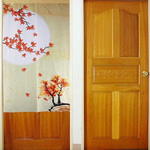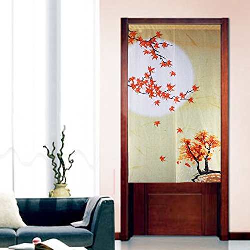 Japanese Tapestry Door Curtain Red Maple Top of Tree on the Month Noren Curtains Doorway Decor