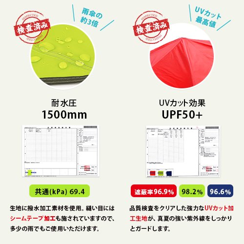 The tent fabric was subjected to UV cut processing of UPF 50 + (maximum displayable performance).