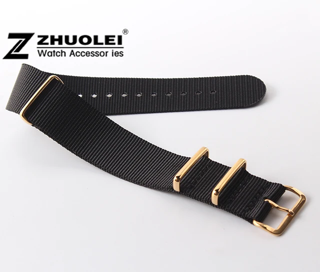 | [해외]골드 시계 버클 나토 나일론 시계 스트랩 18 미리메터 20 미리메터 22 미리메터 24 미리메터 블랙 팔찌 손목 시계 무료 배송 |