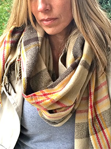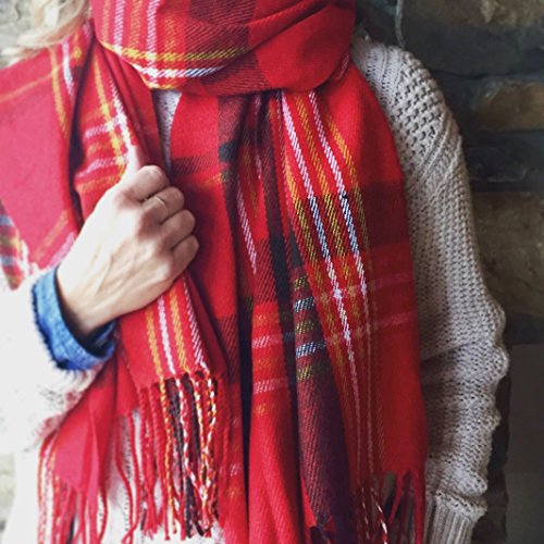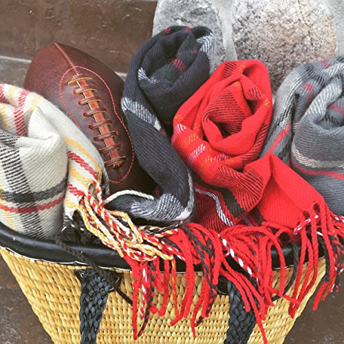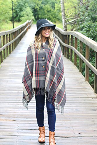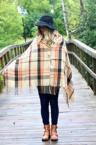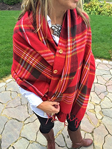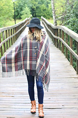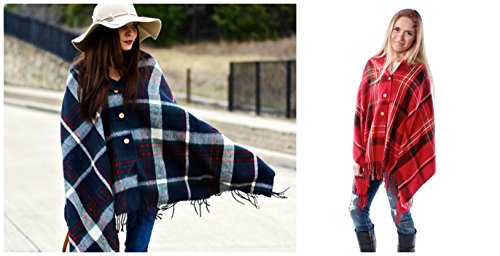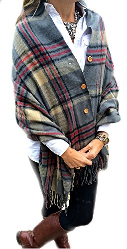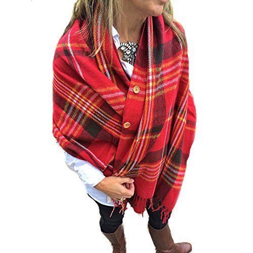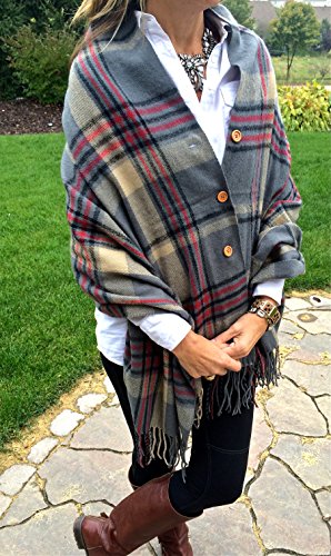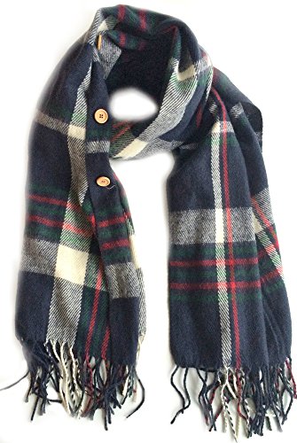 Product Description Bundle up with this cozy plaid button scarf, and add both function and style to your outfit! Plaid is a classic, timeless choice, yet on trend for the season. You have your choice of 4- color options. COLORS Gray Navy Camel Red Size: 200 cm by 70 cm. Warm Acrylic. 0