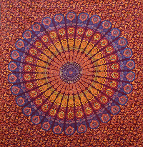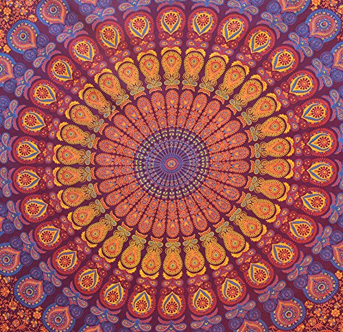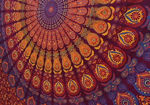 POPULAR HANDICRAFTS HIPPIE MANDALA BOHEMIAN PSYCHEDELIC INTRICATE FLORAL DESIGN INDIAN BEDSPREAD MAGICAL THINKING TAPESTRY 84X90 INCHES,(215X230CMS) MAROON