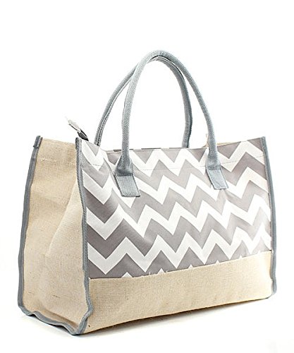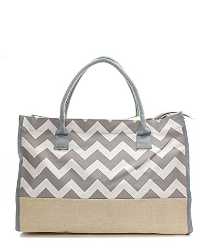 Grey Chevron Stripe Juco Lightweight Large Tote Travel Bag Monogrammable