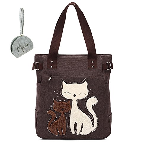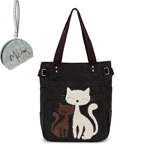 Cute Two Cats Canvas Shoulder Bag Tote Handbags for Women,girls