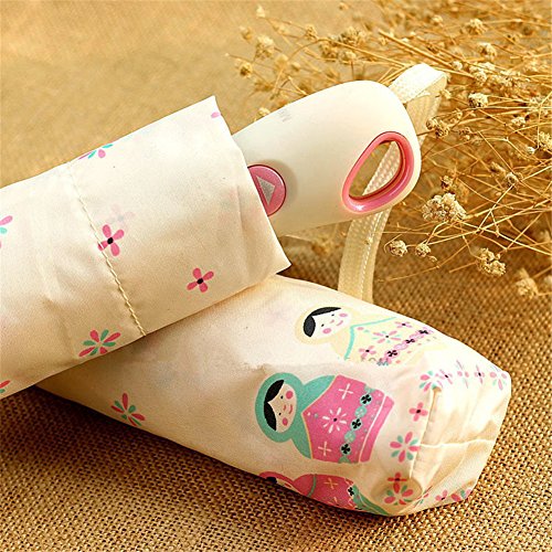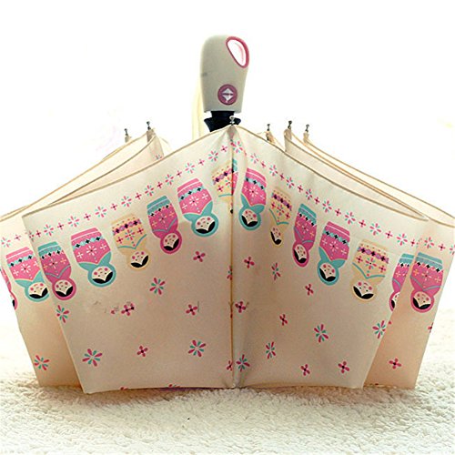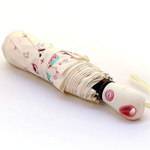Product Description Why would you choose our umbrella? 1. STRONG WIND AND WATER RESISTANCE UMBRELLA, for either sunshiny, windy or rainy day use. 2. Compact 3 foldings design, easily folds up to fit in a suitcase, shoulder bag, crossbody messenger bag. Very convenient! 3. Automatic Open/Close operationl. The umbrella will auto open or close immediately when you press the handle button. Product parameters: Umbrella cloth material: pongee cloth Umbrella cloth density: 190T Frame Material: alloy Umbrella bone quantity: 8 Folding size: Approx 11.8inch/30cm Unfolded size: Approx 35.4inch/90cm Gross weight: Approx 0.77 lb/350g Package : 1 * Fully Automatic Umbrella NOTE: When you get the new umbrella, it may release the smell of vinyl at first. Don't worry about that, it will go off when you put it outside for a couple of days.