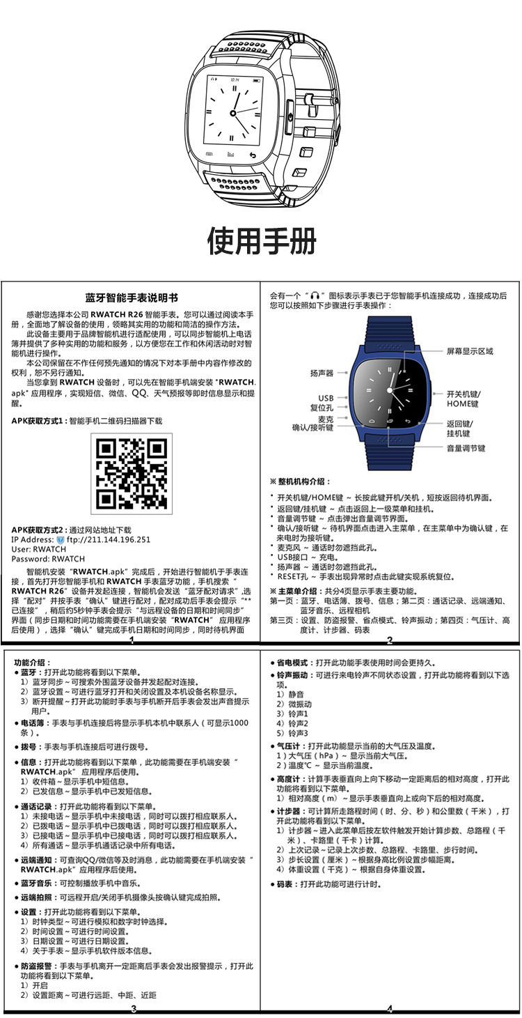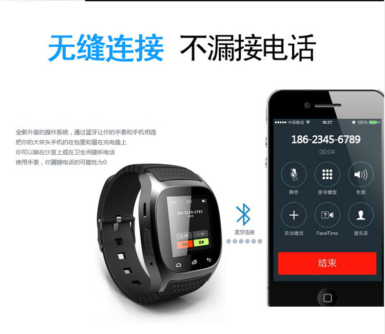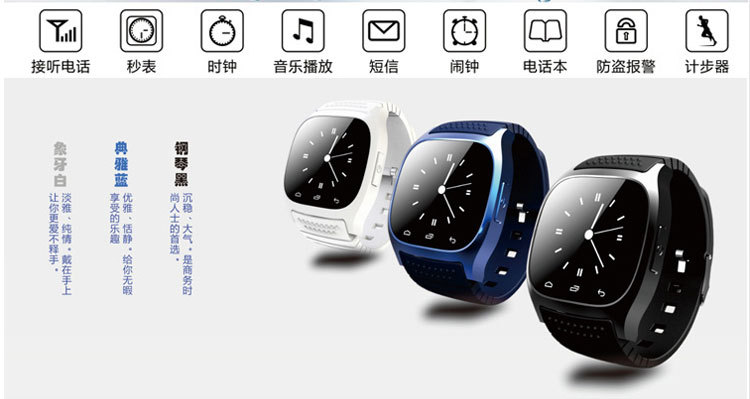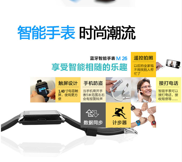 Smart Bluetooth watch bracelet, motion pedometer, remote camera, smart alert, Bluetooth call