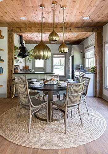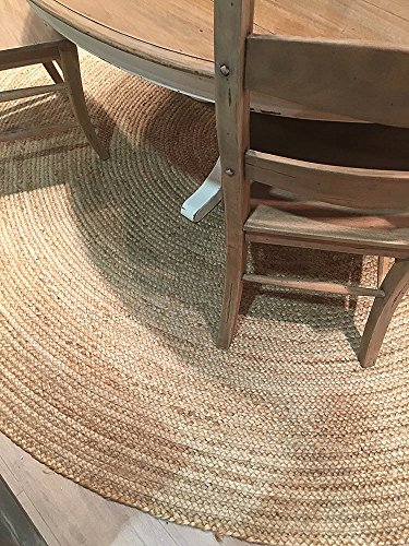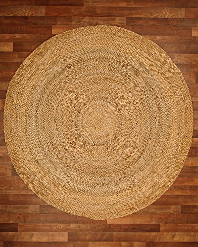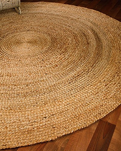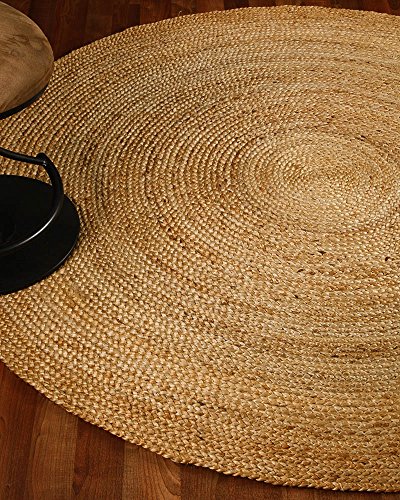 Natural Area Rugs Elsinore Jute Round Rug: Keep your floors clean and inviting with spectacular fusion of fashion- forward pattern, color, and textured Jute by Natural Area Rugs. It breathes a layer of clean, organic texture which brings a dash of breezy style to any space whether it's a living room, bedroom, or office. It has a versatile solid pattern that dexterously blends with most of the room settings. Its loop construction adds visual and textural dimension. A minimalistic pattern with a simple color scheme makes this rug a timeless and calming accent. Made from natural Jute and dyed in neutral tones, each of these rugs is made by skilled weavers who employ a variety of traditional techniques to create these simply beautiful styles. Its fibers exhibit naturally anti-static, insulating and moisture regulating properties. The Eco-Friendly fibers infuse classic settings with simple beauty and a breath of fresh style. Natural Area Rugs recommend a Carpet/Rug Pad as it will protect not only your rug but your hardwood floor as well. Avoid direct sunlight to prevent fading. Product Details: Product Type: Area Rug Construction/Technique: Hand-Made Material: 100% Jute Style: Contemporary Backing: Anti-Static Rug Pad: Recommended (Sold Separately) Country of Manufacturer: Imported Crafted by: Artisan Rug Makers Number of Item included: 1 Dimensions and Weight: Size: (6 Feet x 6 Feet) Length x Width x Height: (72 x 72 x 2) Product Weight: 20.4 PoundsFeature