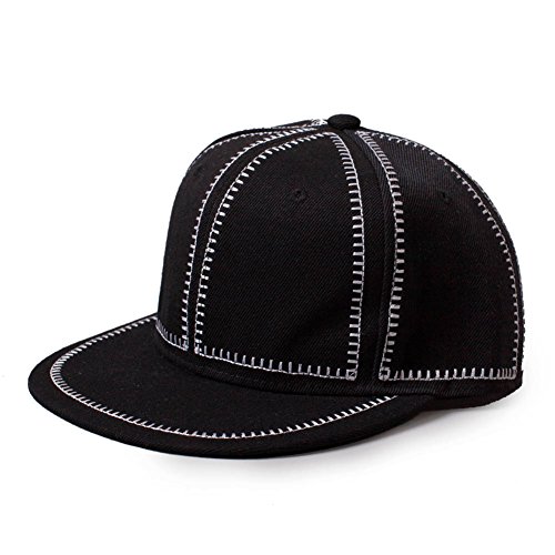 Black Denim Flat Cap White Seams
