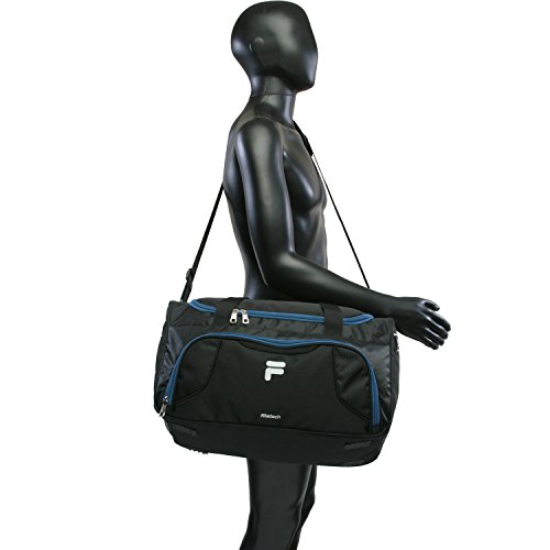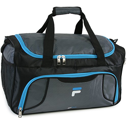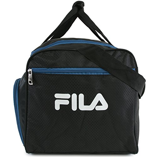 -. Binding : Apparel -. Brand : Fila -. Department : unisex-adult -. Feature : Small gym sport duffel constructed of durable nylon fabric. Reinforced stitching at all stress points for durability. / Spacious main compartment for daily commute, sports practice, or gym session. / Side mesh compartment for quick access and front and side zippered storage for accessories / Adjustable shoulder strap. / Front EXOVENT mesh ventilation. -. Label : Fila Lage -. Manufacturer : Fila Lage -. Model : FL-SD-8119 -. PackageQuantity : 1 -. ProductGroup : Apparel -. ProductTypeName : LAGE -. Publisher : Fila Lage -. Studio : Fila Lage -. Title : Fila Racer Small Gym Sport Duffel Bag