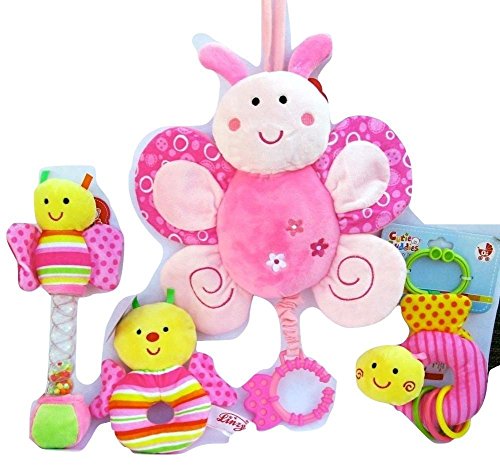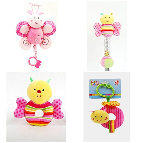 Set of Butterfly Baby Set that includes Pull String Musical Butterfly and Stick Butterfly rattle, plush rattle and a activity toy, Nice Gift for New baby