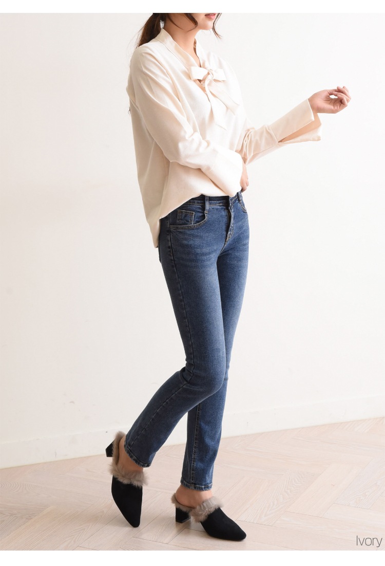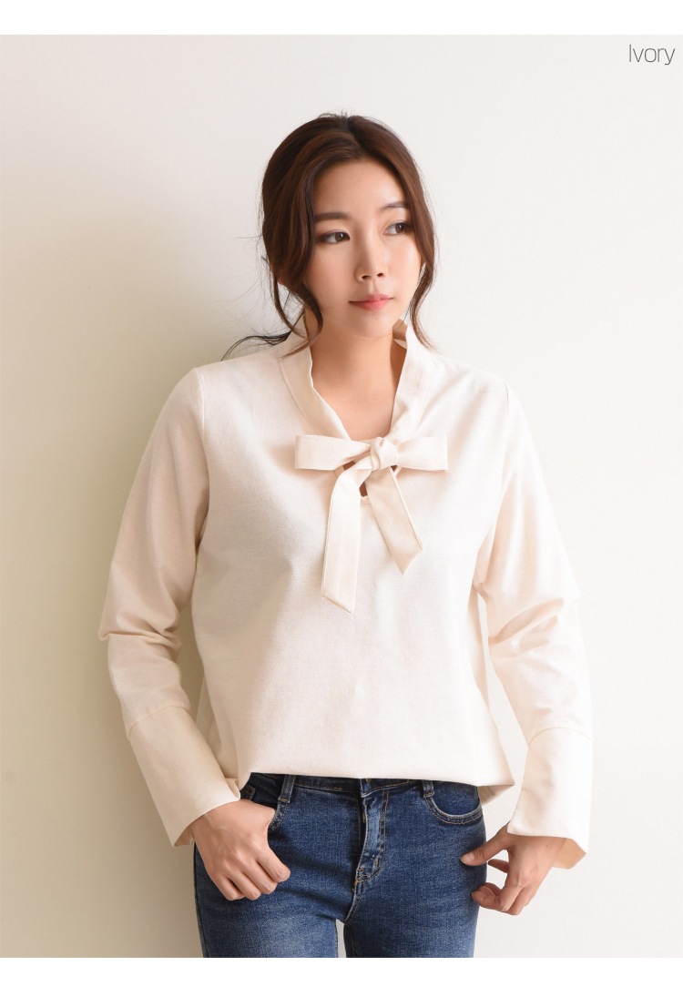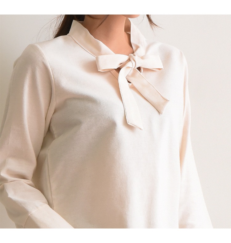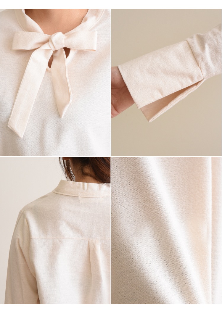 胸元で結ぶリボンが上品で女性らしい印象に!