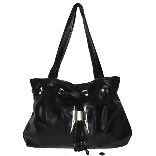 New Charming Women Shoulder Bag Purse Top Zipper closure double handle Black