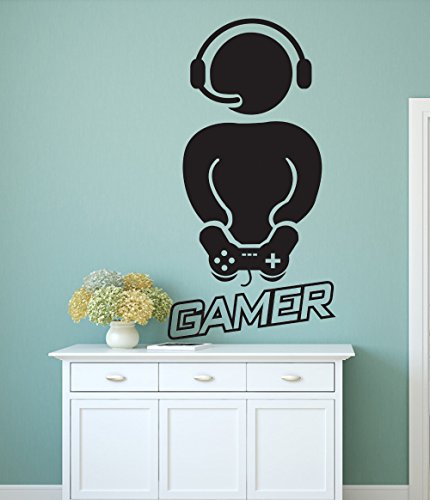 Gamer with Controller Wall Decals Vinyl Wall Sticker Wall Art Design Kids Room Wall Decor