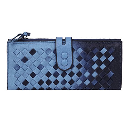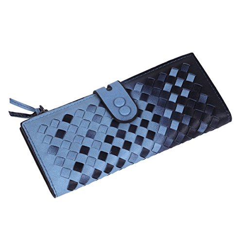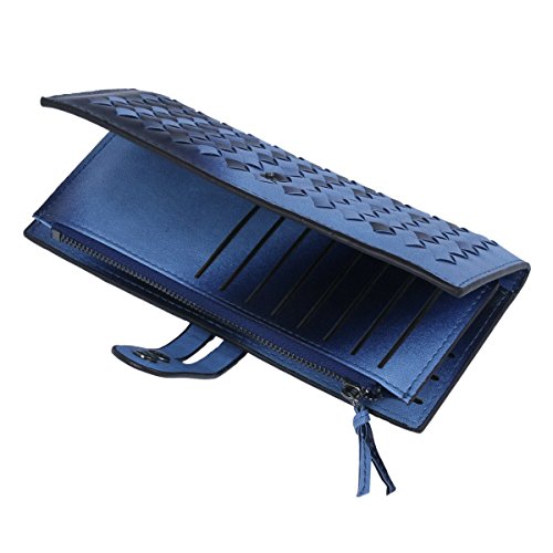 Damara Womens Stylish Rattan Plaited Faux Leather Card Case Holder,Blue