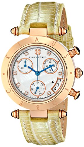 -. Binding : Watch -. Brand : Klaus Kobec -. Department : womens -. EAN : 0817466018612 -. Feature : Swarovski stones accent a graceful mother-of-pearl dial on this Klaus Kobe chronograph with patterned genuine leather straps and a stainless steel case / White mother-of-pearl dial with Swarovski stone index and mineral dial window / Japanese-quartz movement / Case diameter: 33mm / Water resistant to 165 feet -. Label : Klaus Kobec MFG -. Manufacturer : Klaus Kobec MFG -. Model : KK-10013-09 -. MPN : KK-10013-09 -. PartNumber : KK-10013-09 -. ProductGroup : Watch -. ProductTypeName : WATCH -. Publisher : Klaus Kobec MFG -. Studio : Klaus Kobec MFG -. Title : Klaus Kobec Women's KK-10013-09 Couture Analog Display Japanese Quartz Green Watch -. UPC : 817466018612