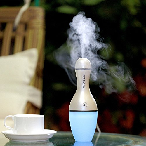 Mini Bowling Cool Mist Filter Free Humidifier with Colorful LED Night Light, Kingfansion Auto Shut-off Essential Oil Diffuser for Office Bedroom Car (Blue)