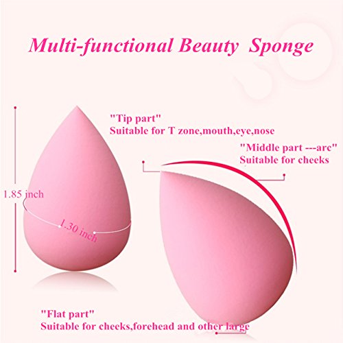 ❤THE TEARDROP SHAPE SPONGES: Ideal for all types of makeup application - full coverage products like powder and foundation works well with the base or flat portion of the sponge and the pointy direct tip works well for direct coverage products like concealer.