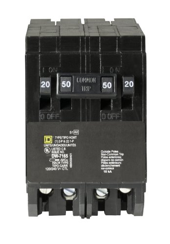 Square D by Schneider Electric HOMT2020250CP Homeline 2-20-Amp Single-Pole 1-50-Amp Two-Pole Quad Circuit Breaker