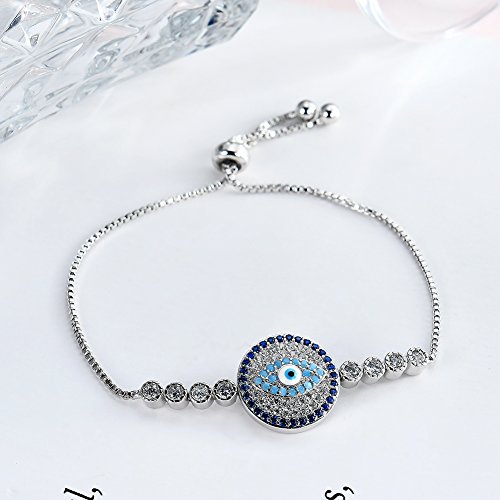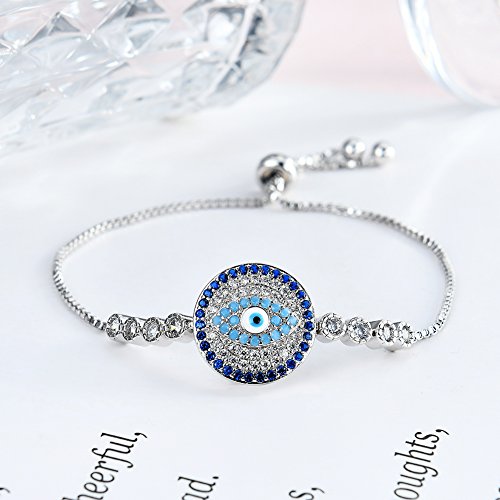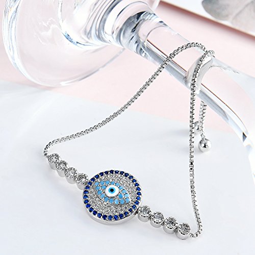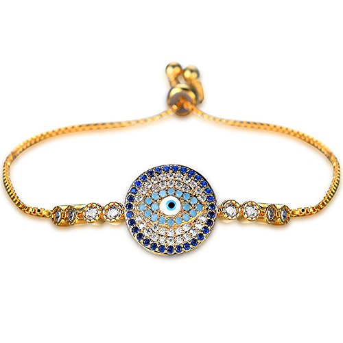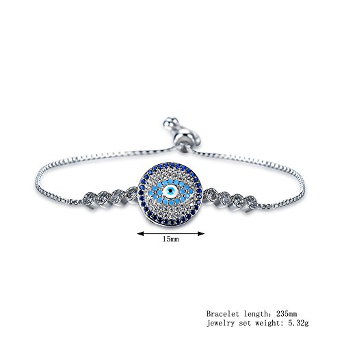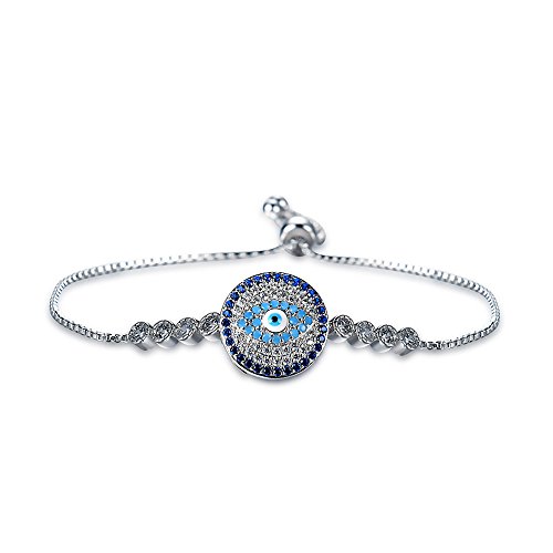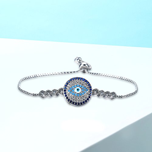 When always on the look-out for the latest fashion trend, this gorgeous Evil Eye bracelet twinkles with and Simulated Sapphire blue cubic zirconia set in.
