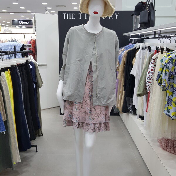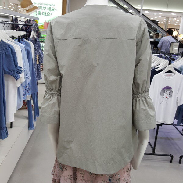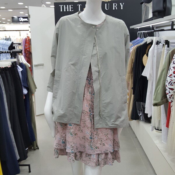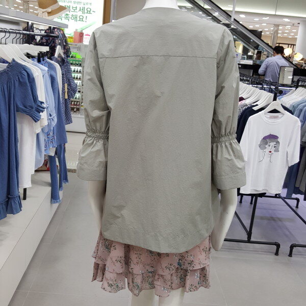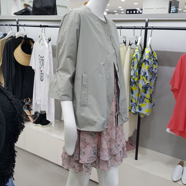 깔끔한 라운드넥에 소매부분 디테일이 귀엽고 가볍게 착용하기 좋은 여름철 점퍼입니다프리사이즈 가슴둘레108앞기장68뒤기장72