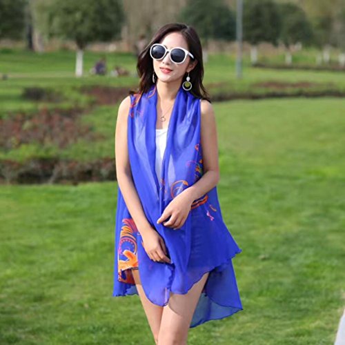 Quantity:1PC Its special design will make you look unique Elegant design, you can wear in many ways, you can put in your bag when you need at any time This scarf for a variety of purposes, as scarves, shawls, sleeve, such as on the beach, ride a bike when sunscreen can It is a good gift for your lover,family,friend and coworkers Material:Chiffon Pattern:Printing Size:69"x41" (175*105CM ) All dimensions are measured by hand, there may be 2-3 cm deviations Note:Due to the difference between different monitors, the picture may not reflect the actual color of the item. We guarantee the style is the same as shown in the pictures