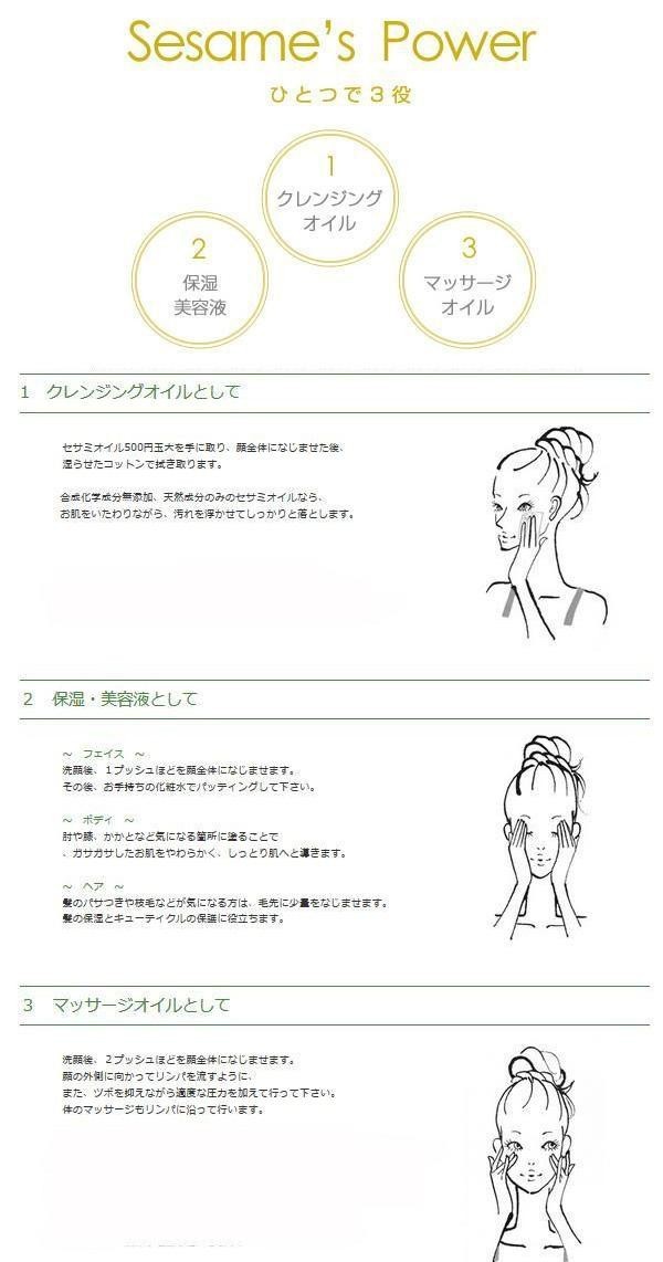 | クレンジング、マッサージ、美容液として使えるセサミオイル☆ |
