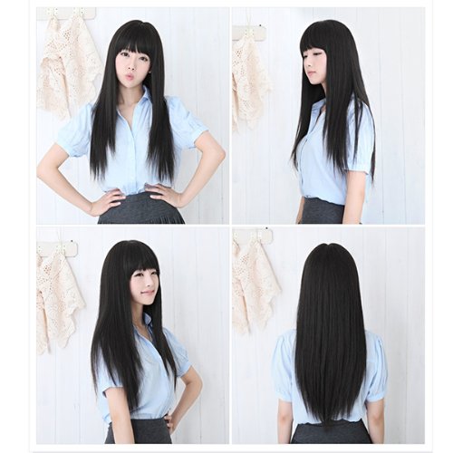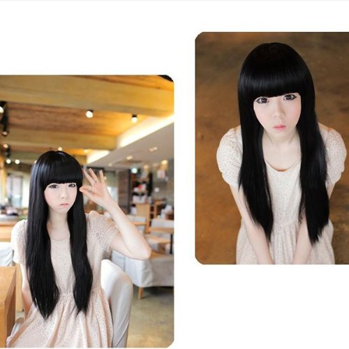 Title : AGPtek New style black Fashion Long straight women's Girl full Hair Wig cosplay