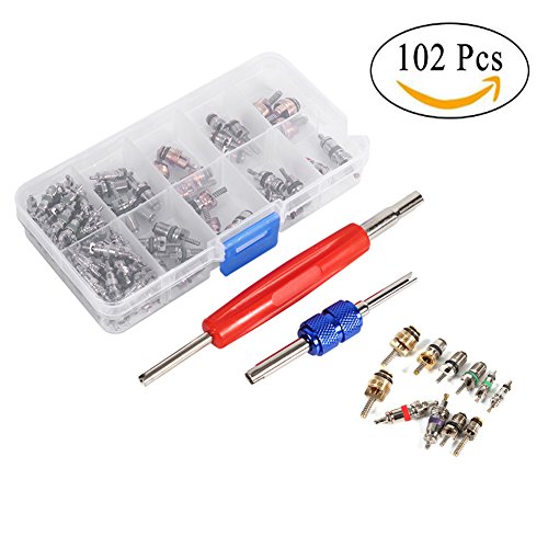 102 Pcs Air Conditioning Valve Core Accessories A/C R12 R134a Refrigeration Tire Valve Stem Cores Remover tool Assortment Kit