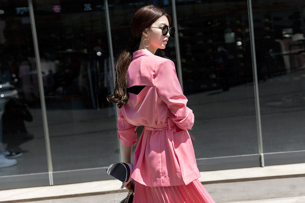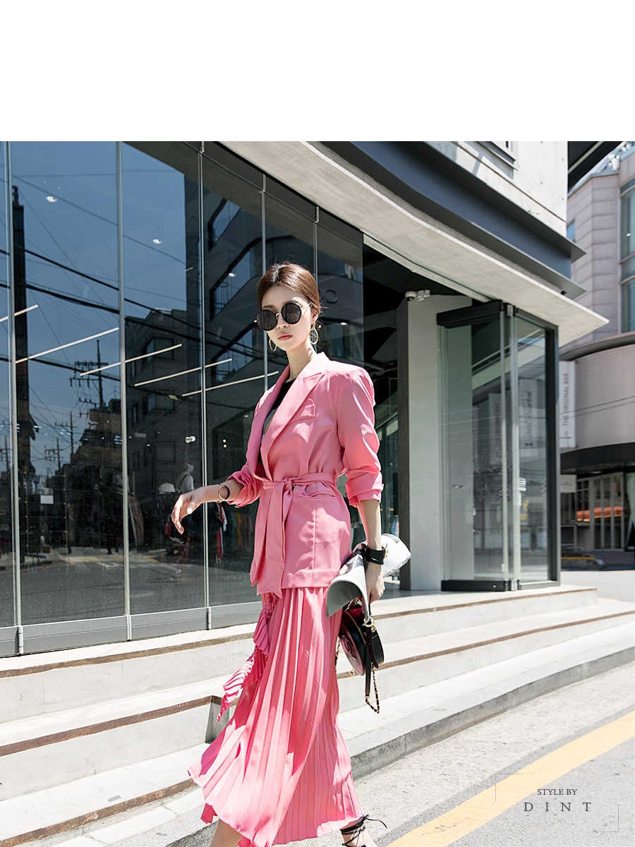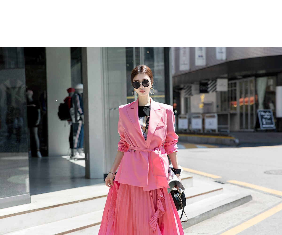 J-4947 백 트임 포인트 자켓(벨트set) Pink