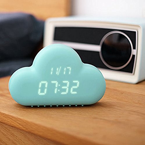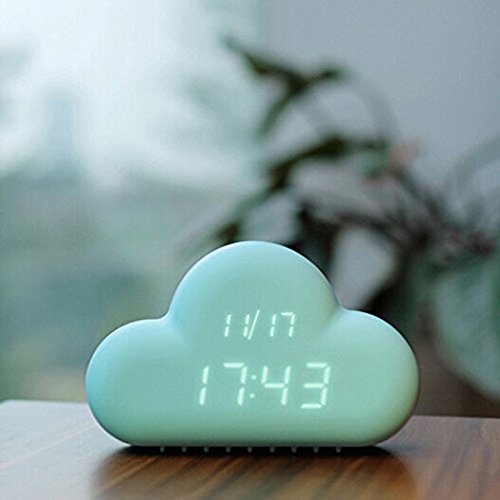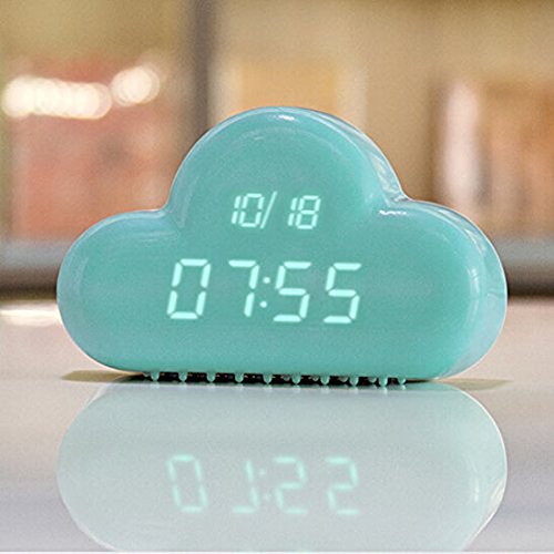 Cute Cyan Cloud Shape Sound Control Digital USB Alarm Clock USB/Battery Power Supply + AC Adapter