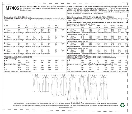 -. Title : MCCALLS M7405 MISSES DRESSES & BELT (SIZE LARGE-XX-LARGE) LEARN-TO-SEW SEWING PATTERN