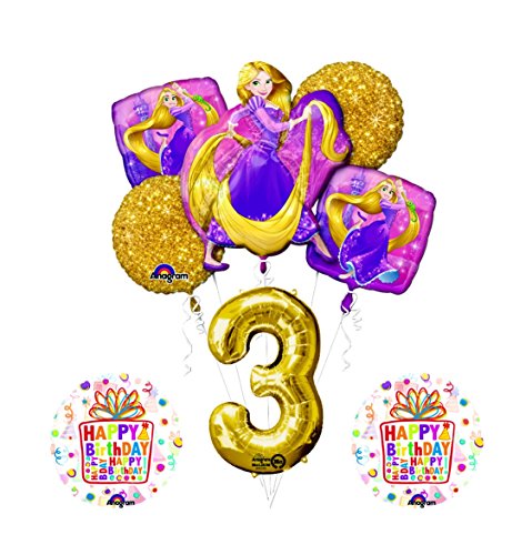 -. Feature : (1) 31" XL Rapunzel mylar shape balloon. / (1) 34" Giant Gold Number 3 / (2) 26" B-Day Party See-Thru Foils. / (2) 18" Rapunzel Square mylar balloons / (2) 18" Gold Faux Sparkle round mylar balloon