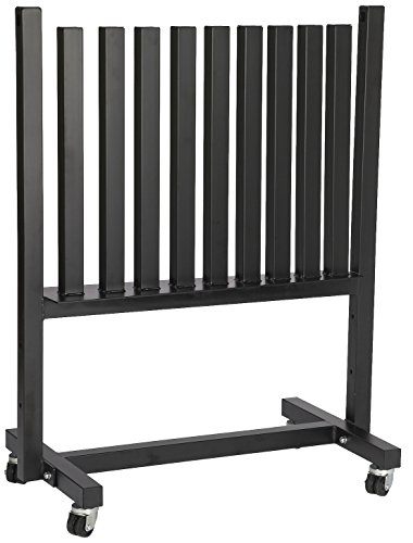 Sturdy steel with black enamel finish, the SPRI Deluxe Vinyl Dumbbell Rack holds 80-140 SPRI Deluxe Vinyl Dumbbells. 40"H x 46"W x 26"D. Dumbbells not included.