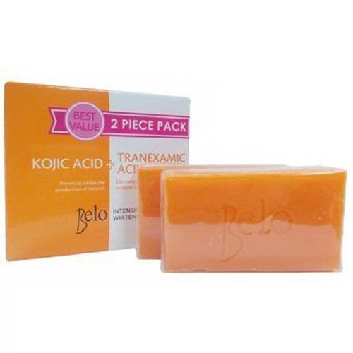 -. Feature : Belo's most intensive whitening bar. / With Kojic Acid and Tranexamic Acid clinically proven to whiten 64% better than products that use Kojic Acid alone. / Proven to prevent melanin production and inhibit inflammation. / Lightens even stubborn dark spots. / Dermatologist tested. Clinically proven.