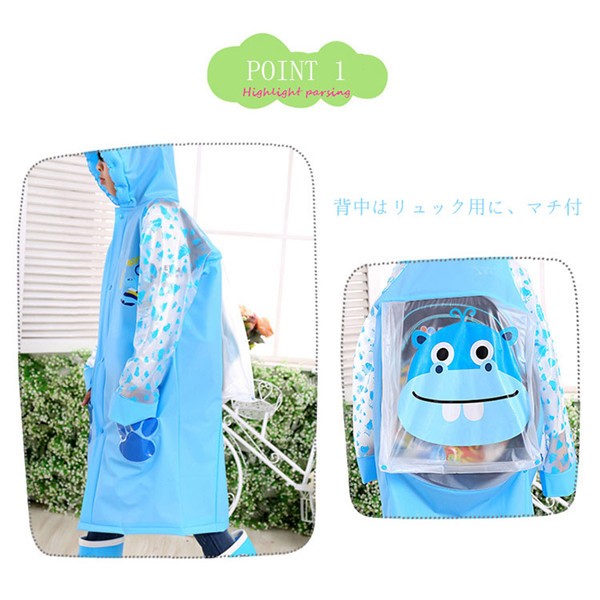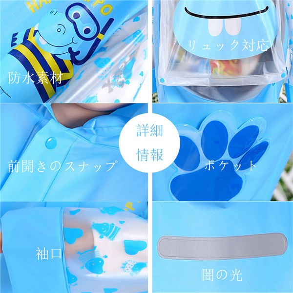 レインコート キッズ ランドセル リュック 対応 動物 raincoat 子供用 防水 雨合羽 カッパ 雨具 女の子 男の子 通学メイン素材: pvcカラー: ピンク ブルー イエロー グリーンサイズ: M L XL 2XLレインコートは柔らかく、肌に刺激を与えず着心地が良いです。防水性が高いだけではなく、透湿性にも優れており快適性にも配慮されています。【リュック対応】背中部分が立体設計になっているので、リュックを背負ったまま、レインコートが着ることができます。【用途いろいろ】入園入学・通園通学・保育園・幼稚園・小学校低学年・一年生・遠足雨具・旅行レインアイテム・ランドセル対応。サイズは、実寸を測っているため多少の誤差はございます。実商品とPC画面では、多少見た目の色に違いがございます。初期不良の場合、未使用の商品のみ到着日から7日以内にご連絡頂ければご返金、交換対応させて頂きます。●商品が到着しましたら、必ず中の商品を確認していただき、商品の到着後、3-4日間以内に必ず弊社までご連絡ください。★いかなる理由であってもご使用後の返品交換は承れません。