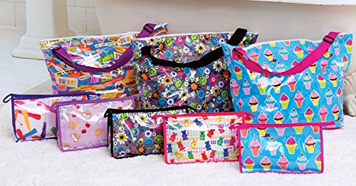 -. Brand : iscream -. ClothingSize : One Size -. Department : Girls -. Feature : Start off your weekend right by getting packed up and ready to go with this extra roomy, extra bright, extra fun weekender bag / Roomy tote is constructed from polyester with a clear plastic overlay so that it's both durable and easy to keep clean / Truly enough space for a weekend's worth of essentials - it measures 23.5" wide x 16" high by 9" deep / Zipper closure keeps everything neatly tucked inside and the zippered interior pocket is perfect for keeping small items organized, too! / Strong polyweb shoulder strap is adjustable for the perfect fit -. Model : 810-WE -. MPN : 810-WE -. NumberOfItems : 1 -. PackageQuantity : 1 -. PartNumber : 810-WE -. ProductGroup : Apparel -. ProductTypeName : LAGE -. Size : One Size -. Title : iscream Fun Print Weekender Tote Bag