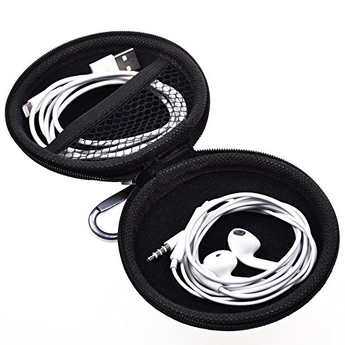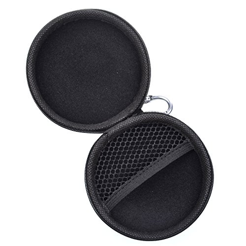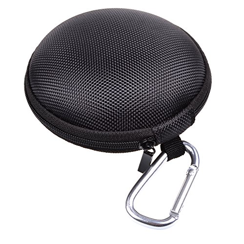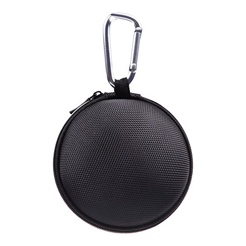 Cosmos ® 4 Inch Diameter Black Color Universal Bluetooth Handsfree Headset Hard EVA Case Bag with Zipper Enclosure, Inner Pocket, and Durable Exterior + Silver color Carabiner