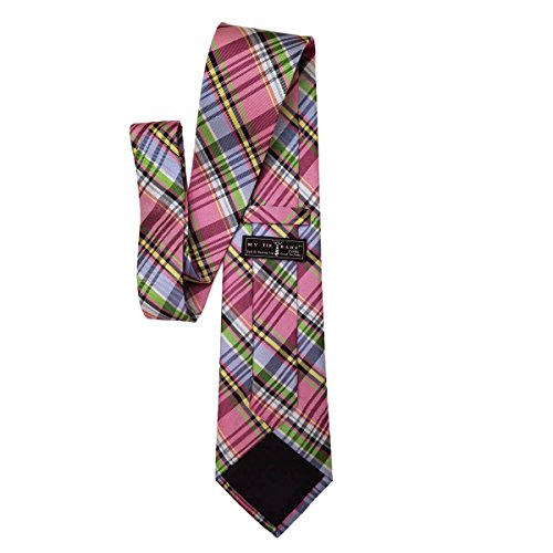 (My Tie Bank)/Accessories/Ties/DIRECT FROM USA/Passion Black Pink Plaid Check 100% Silk 2.5 Inch Skinny Tie
