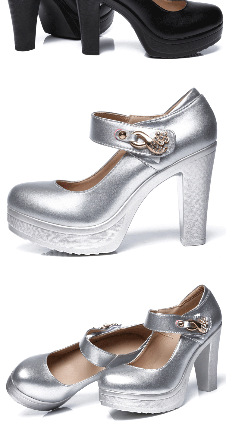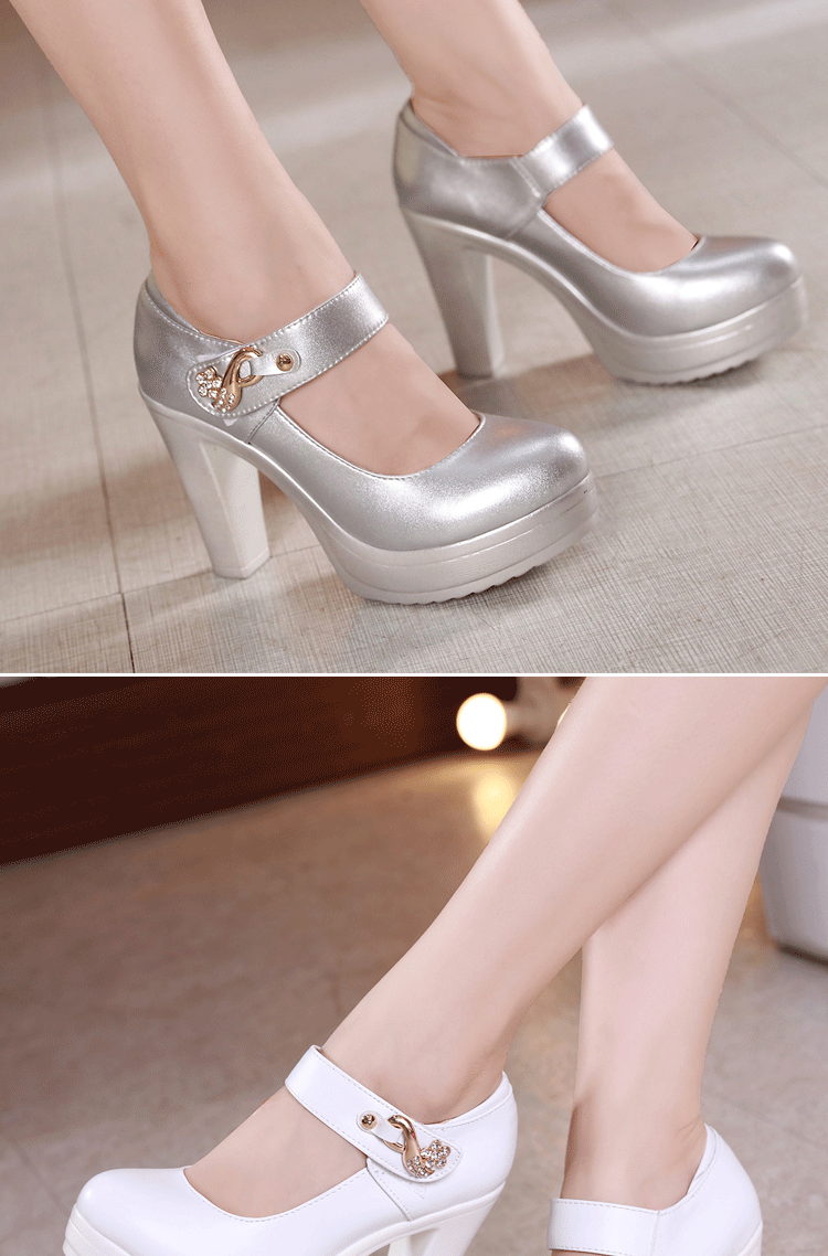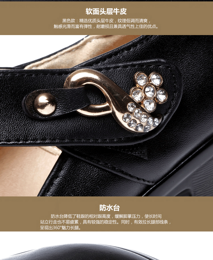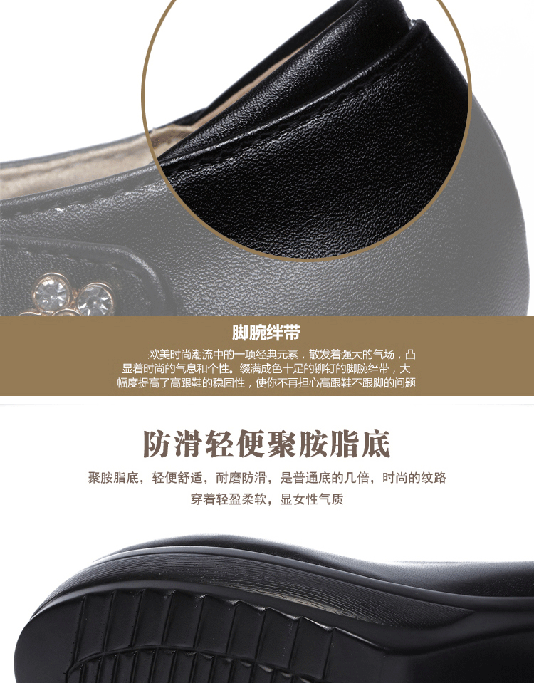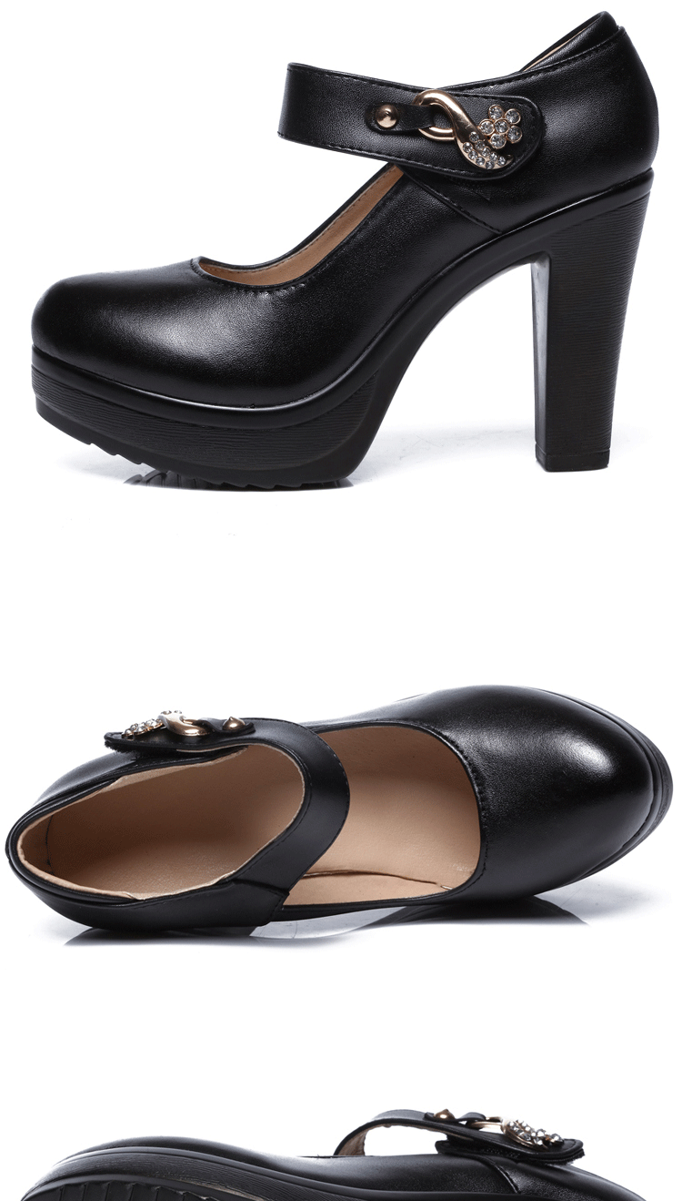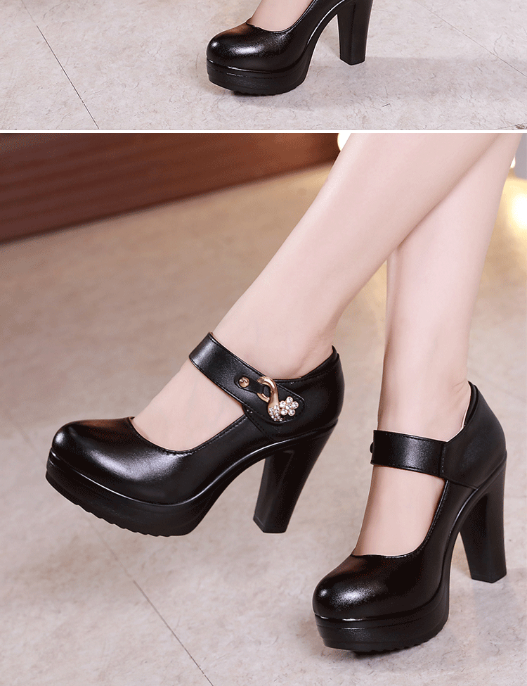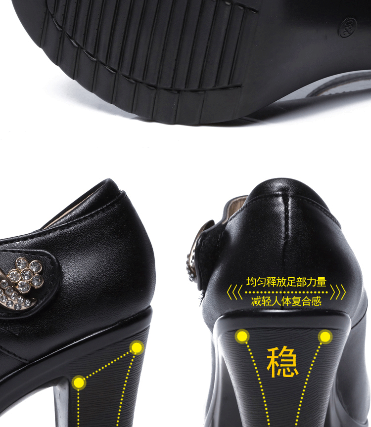 12CM头层牛皮舒适高跟单鞋模特真皮女鞋大小码浅口粗跟走秀工作鞋