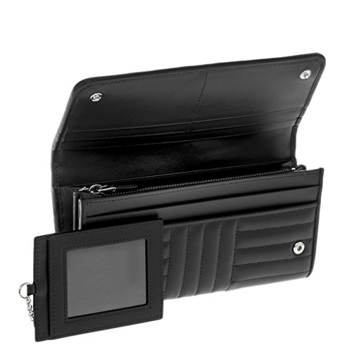 Binding : Apparel Product Description Prada Womena€TMs Quilted Calf Leather Wallet Black: Quilted calf leather construction. Silver tone hardware. Metal Prada logo on front. Flap entry. 3 compartment. One zippered compartment. 10 card slots. Detachable ID tag with chain. Made in Italy. Approximately: 4a€ H x 7.5a€ W x .5a€ D. 0