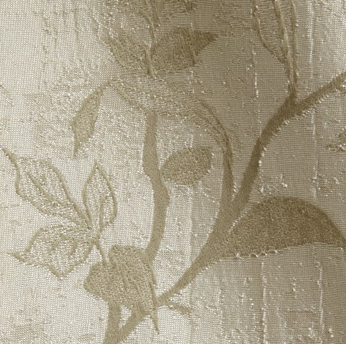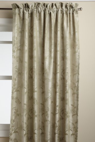 Shimmering textural woven jacquard tailored panel is topped with matching waterfall valance opulently trimmed with tasseled fringe. the all over floral motif is created by lustrous yarns of varying textures and heights. all components have a deluxe 3-Inch rod pocket.