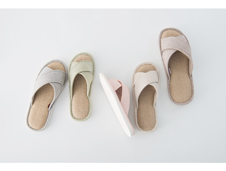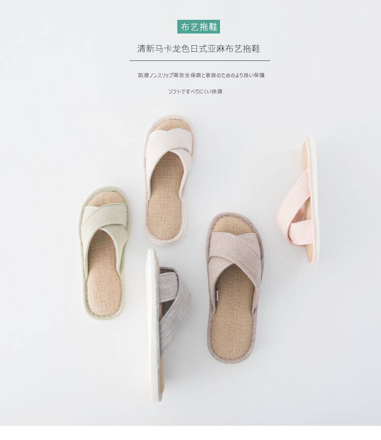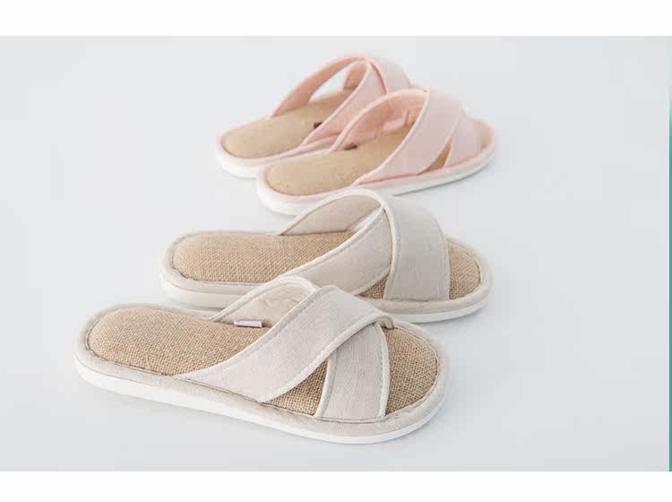 日式简约情侣家居亚麻家用男女士布艺室内凉拖鞋不伤地板可机洗