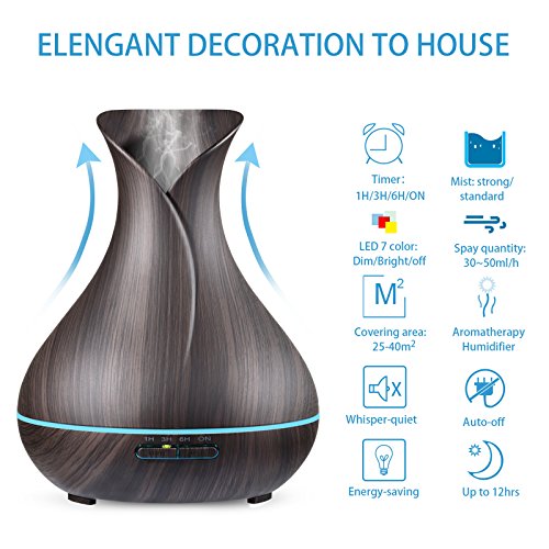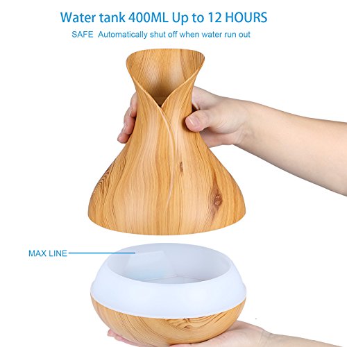 NexGadget 400ml BPA Free Ultrasonic Aromatherapy Essential Oil Diffuser - Cool Mist Humidifier for Home,Office,Spa&More - Wood Grain