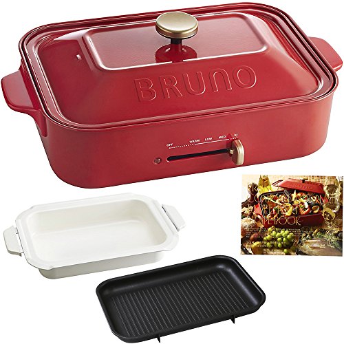 원본상품명: 【レシピブック付き】BRUNO コンパクトホットプレ?ト + グリルプレ?ト + セラミックコ?ト鍋 3点セット(レッド)