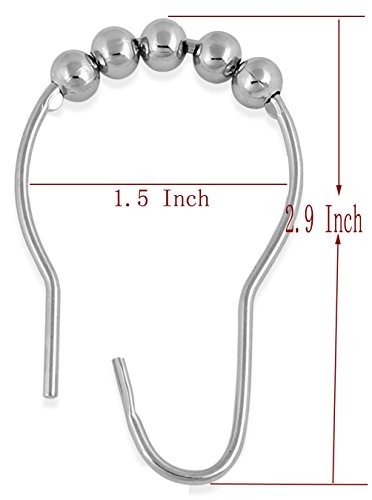 Sunwin Shower Curtain Rings Stainless Steel Polished Chrome Shower Curtain Hook Set of 12 Rings
