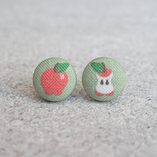 -. Title : Fall Apple Fabric Button Earrings