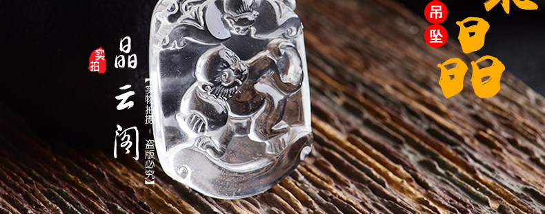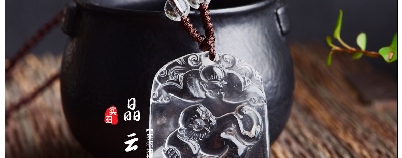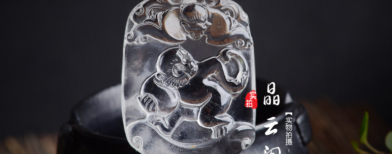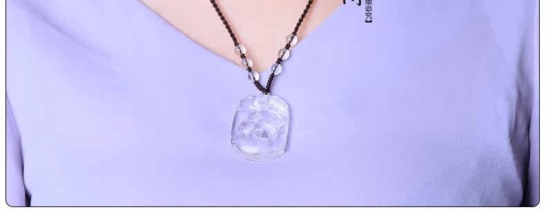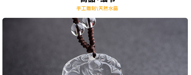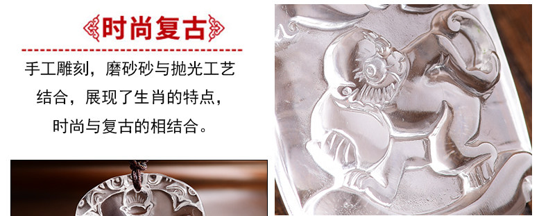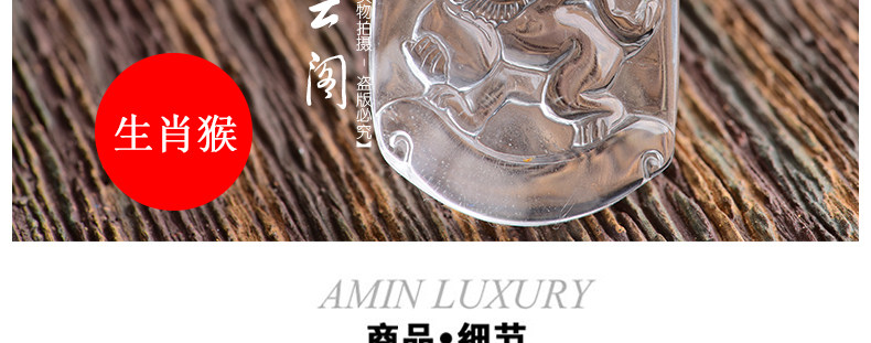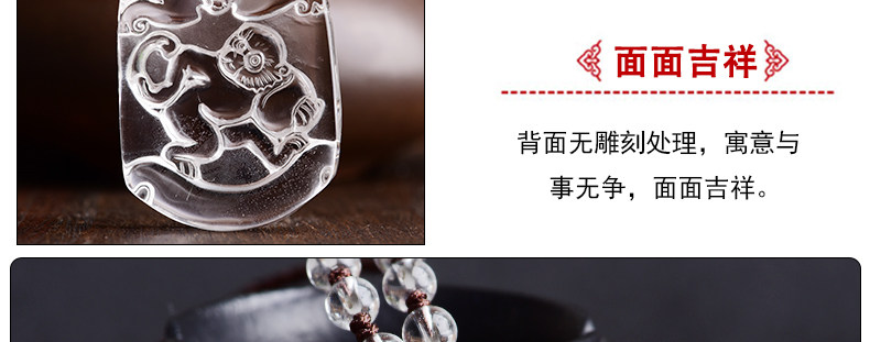 开光天然白水晶十二生肖属猴吊坠 男女款项链挂坠情侣款饰品挂件