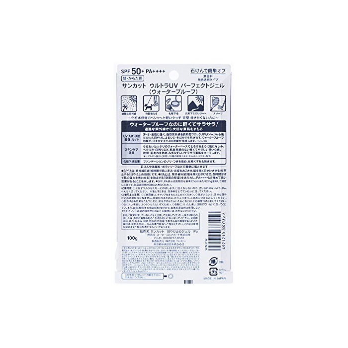 원본상품명: KOSE コ?セ? サンカット 日?け止めジェル 50 (ウォ?タ?プル?フ) (SPF50+ PA++++) 100g
