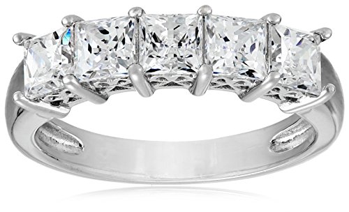 Platinum-Plated Sterling Silver Swarovski Zirconia 2 cttw Princess Cut 5 Stone Ring, Size 7
